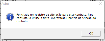 Depois de clicar em Sim, uma nova mensagem de alerta será exibida, informando que um registro de alteração foi criado.
