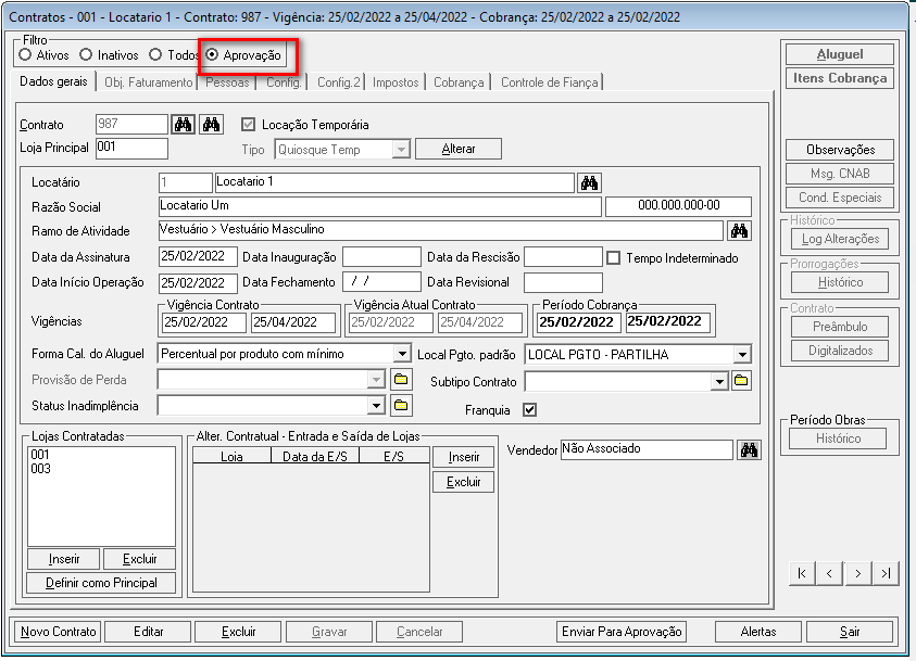 Após a confirmação da mensagem acima, uma pré-visualização será exibida do contrato cadastrado no status de Aprovação.