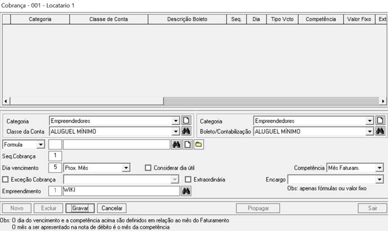 Exceção Cobrança: utilizado para gerar uma conta em uma cobrança diferente do padrão utilizado.
