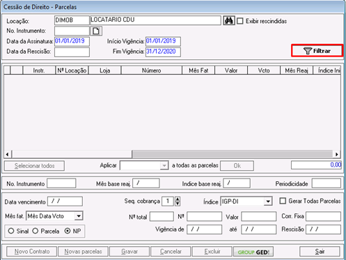Vigência: se o contrato de CDU tiver um período de vigência diferente do contrato de faturamento do lojista, a vigência inicial pode ser preenchida nesse campo.