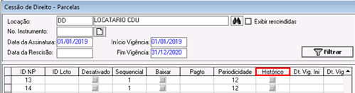 Historico: campo informativo. É preenchido através da rotina Parcelas Históricas CDU.