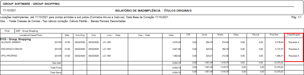O parâmetro de filtro “Exibir Classificação de Receita” também foi adicionado ao formato “Formato Padrão” do tipo “Detalhado” do relatório de Inadimplência.