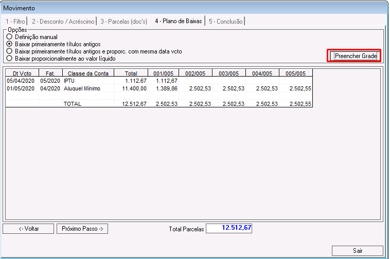 Clique no botão Preencher Grade.