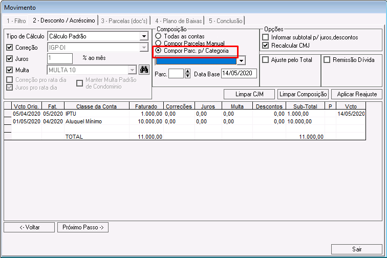 2º - Selecionar a composição das parcelas