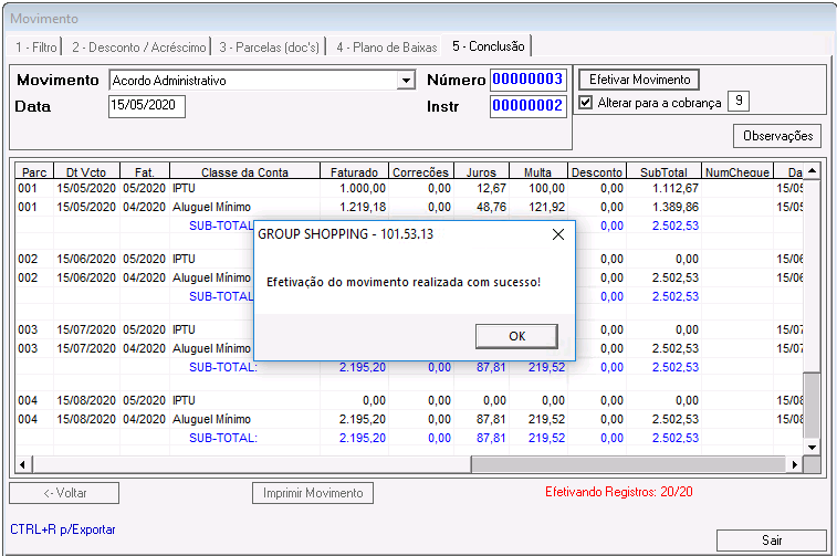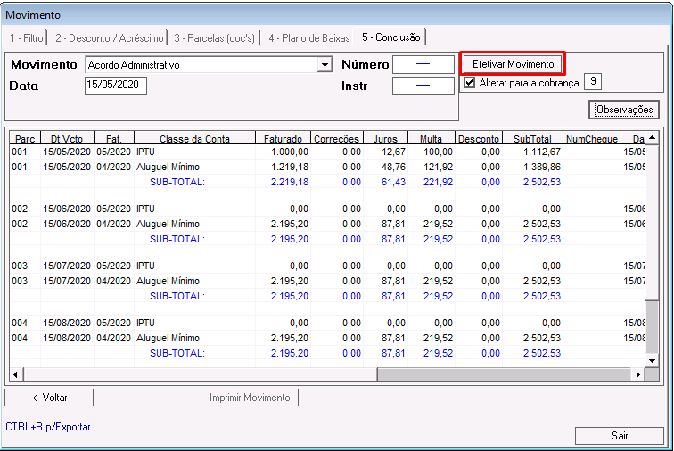Clique no botão Efetivar Movimento.