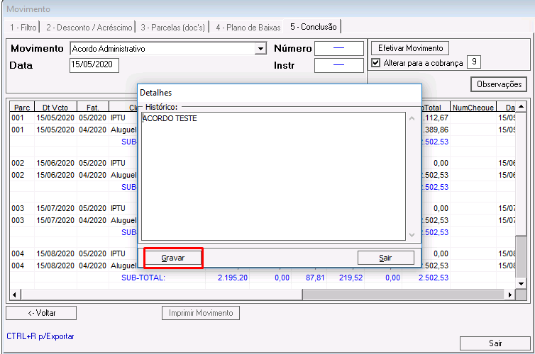 Importante: Esse processo deve ser repetido para todas as parcelas do acordo.