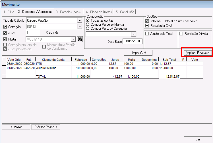 Clique no botão Aplicar Reajuste.